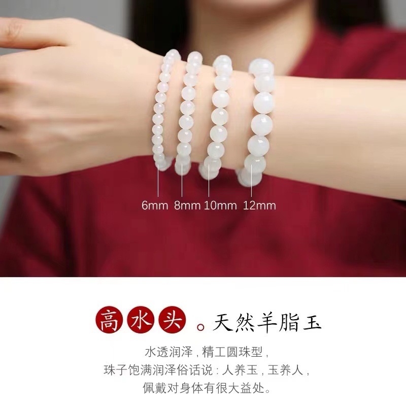 Imitation Xinjiang Sheep Fat White Jade Buddha Bead Bracelet Fashion Simple Men And Women Round Bead Single Circle Hetian Jade Bracelet Welfare